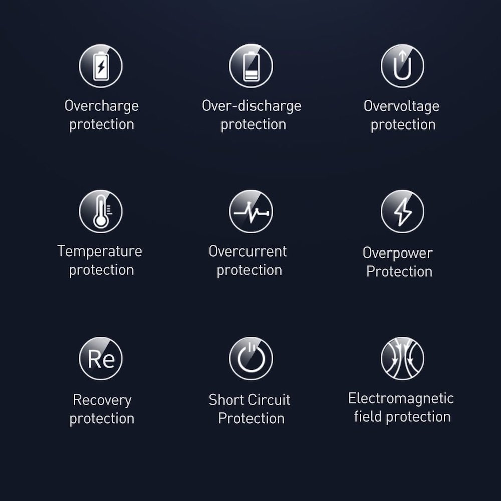 Baseus Adaman е проектирана с вградени защити срещу презареждане, преразреждане, пренатоварване и окъсяване, осигурявайки безопасност при всяка употреба. LED дисплеят показва нивото на батерията, така че винаги да знаете колко енергия имате на разположение. С мощност до 22.5W, тя е съвместима с всички мобилни устройства, които изискват мощност до 22.5W.