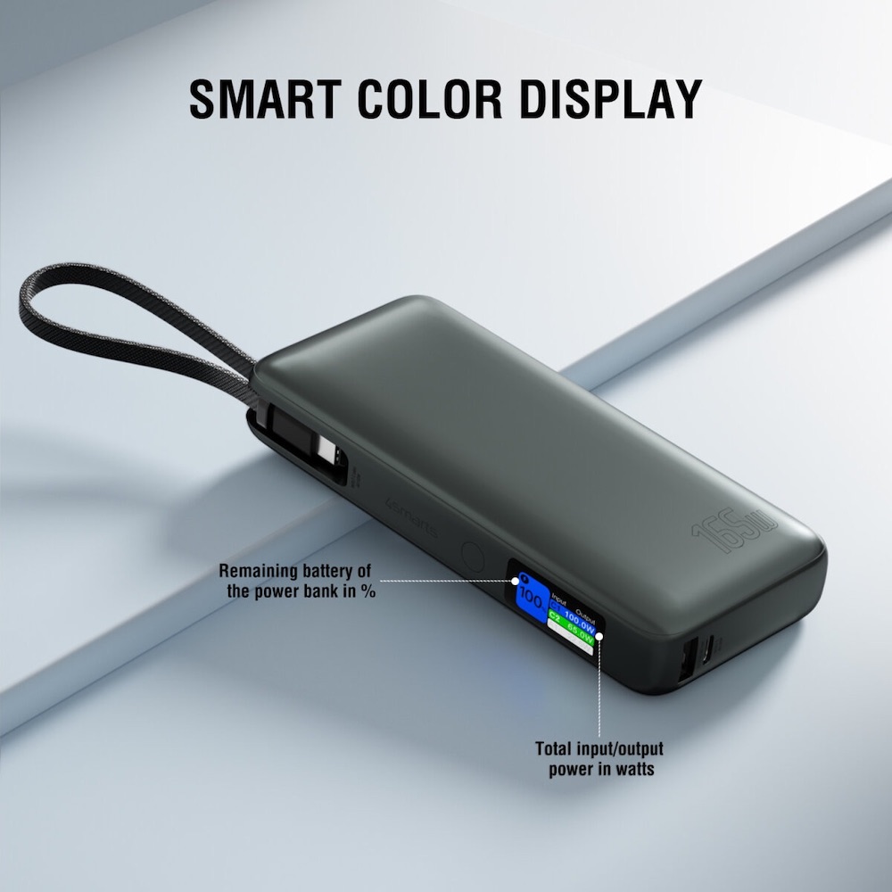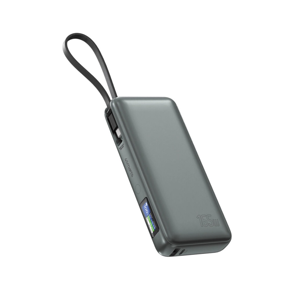 Външна батерия с USB-A и USB-C портове и вграден USB-C кабел - 4smarts Power Bank Enterprise 20000 mAh 165W (тъмносив)