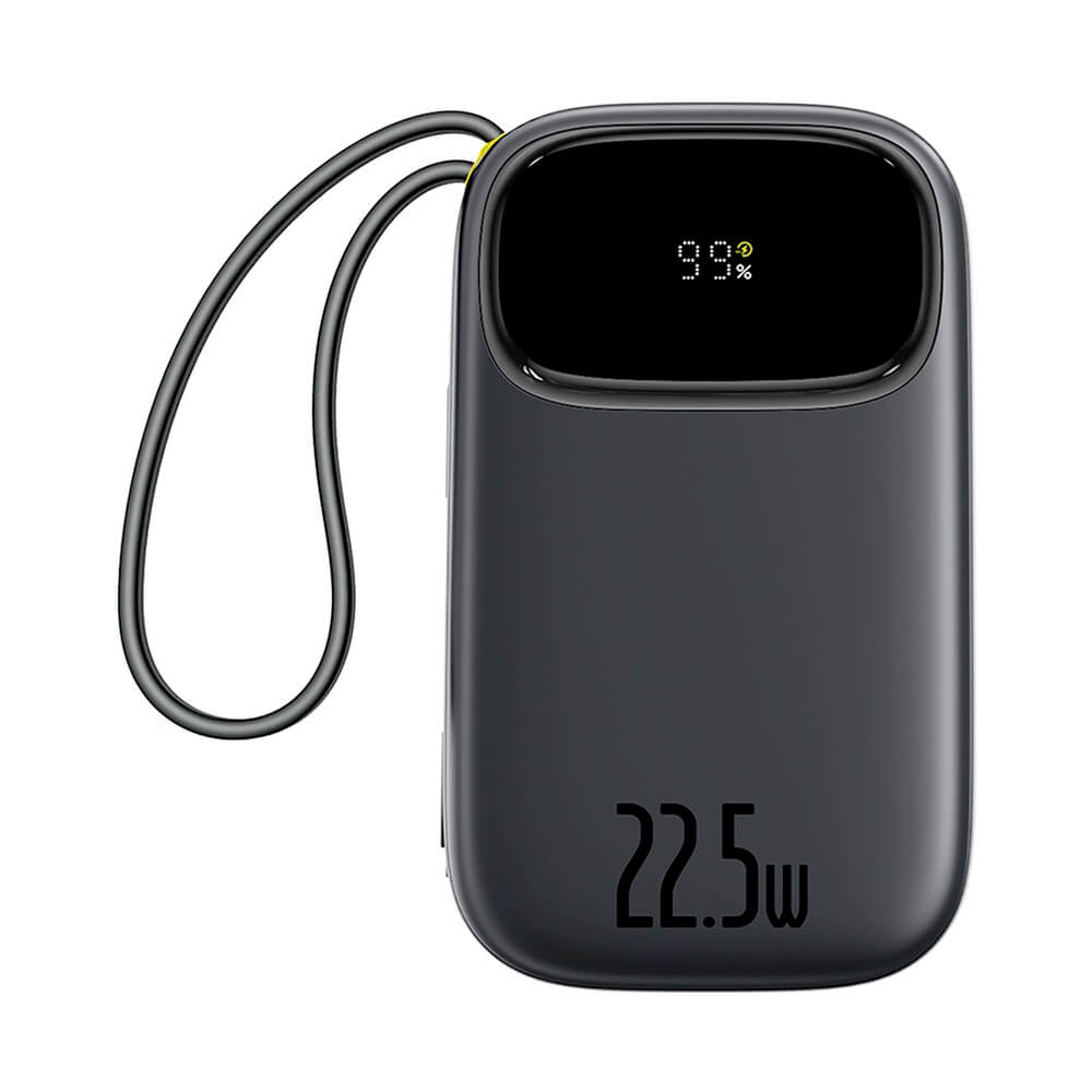 Външна батерия с вграден USB-C и Lightning кабел и USB-C, USB-А портове - Baseus Qpow3 Digital Display Power Bank With USB-C And Lightning cable 22.5W 20000mAh (черен)