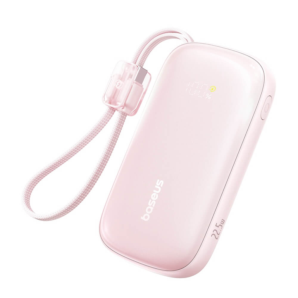 Външна батерия с вграден USB-C и Lightning кабел и USB-C, USB-А портове - Baseus Qpow3 Ultra EnerFill Power Bank With USB-C And Lightning Cable 22.5W 20000mAh (розов)