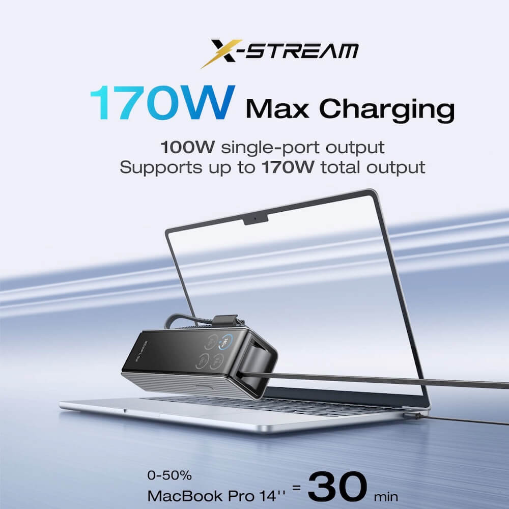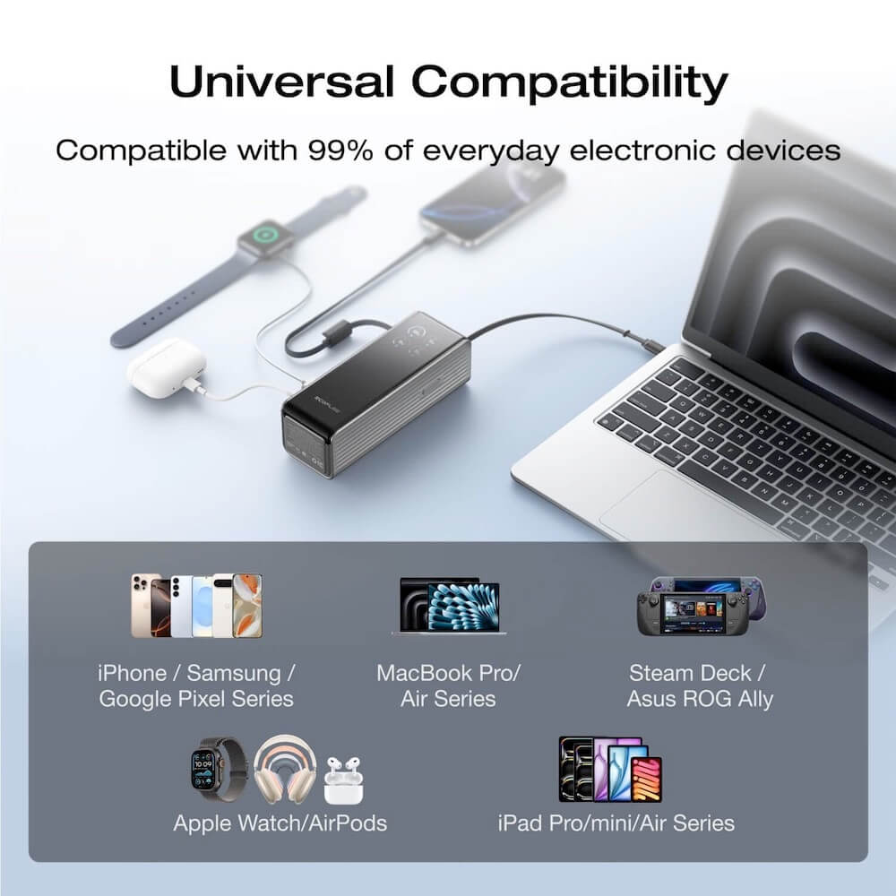 - Модел: Laptop Power Bank With Built-In Retractable Cables 25000 mAh 165W