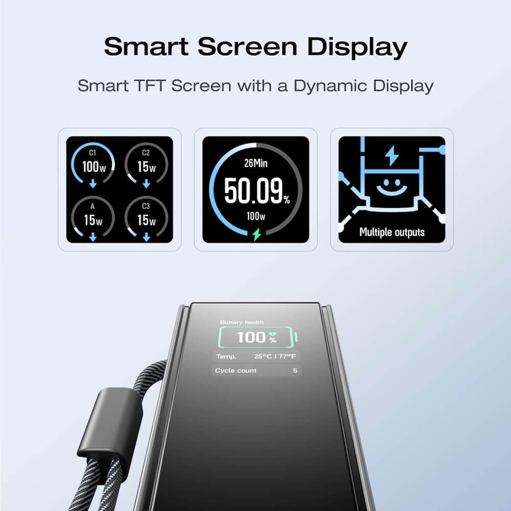 - USB-C кабел 1 + USB-C кабел 2 + USB-C порт: 100W + 15W + 15W (130W max)