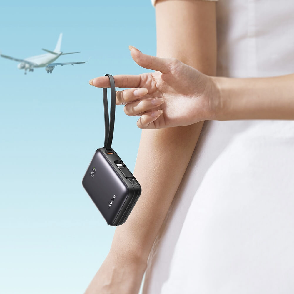 Външна батерия с вградени USB-C и Lightning кабели и USB-C порт и технология за бързо зареждане - Joyroom JR-PBF27 Portable Power Bank 22.5W 10000 mAh (черен)
