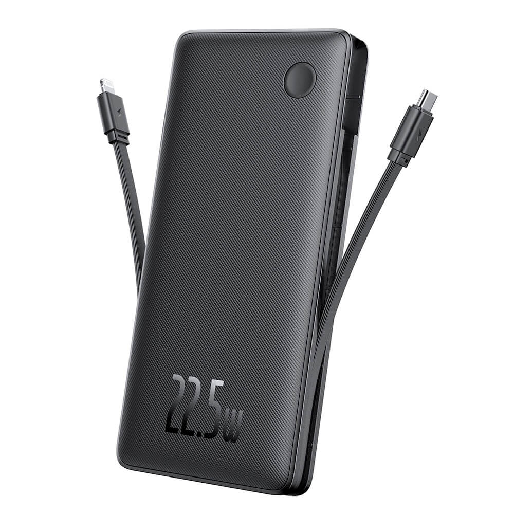 Външна батерия с вградени USB-C и Lightning кабели и USB-C, USB-A портове и технология за бързо зареждане - Baseus Airpow Lite Fast Charging Power Bank 22.5W 10000 mAh (P10067501123-00) (черен)