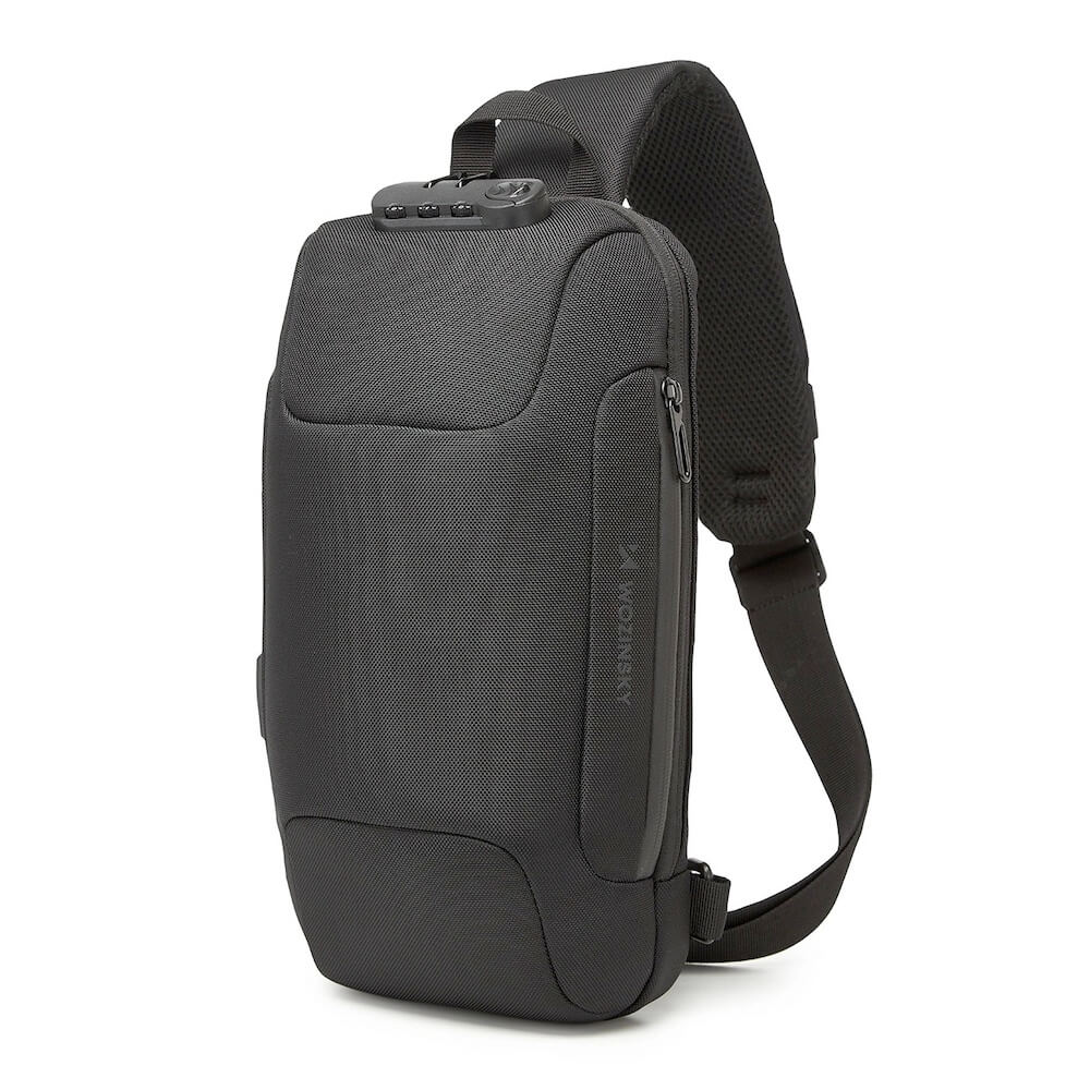 Wozinsky Anti-Theft Sling Backpack With Lock - стилна чанта с презрамка и ключалка за смартфони и други дребни вещи (черен)