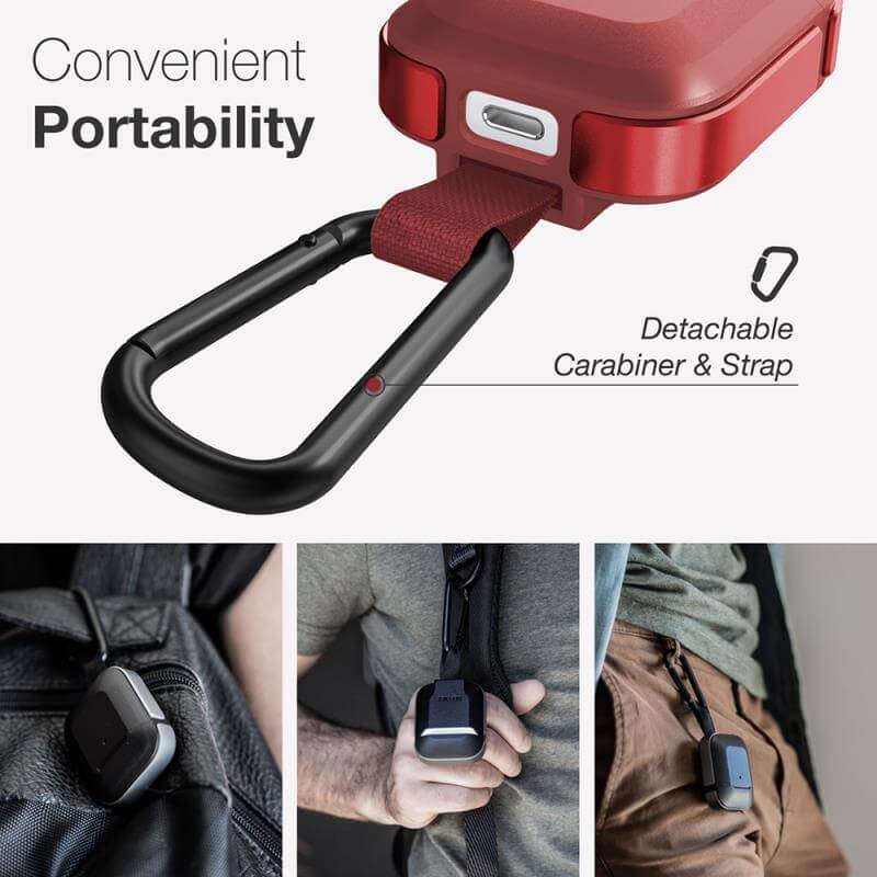 XDoria Defense Trek for AirPods - удароустойчив кейс с карабинер за Apple Airpods (червен)