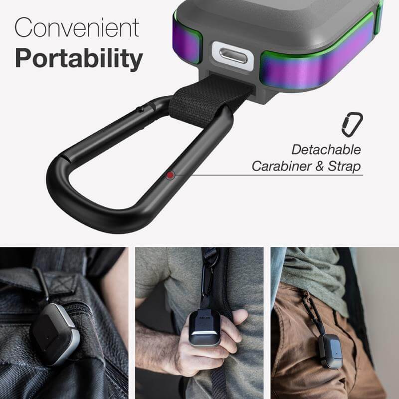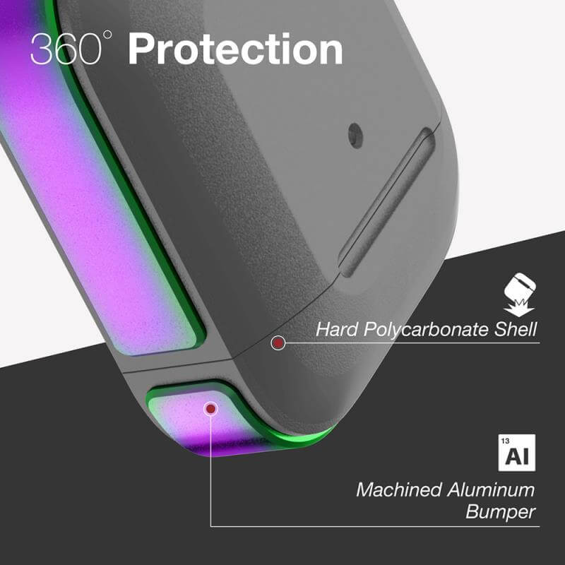 - Изработка от премиум материали. Defense Trek комбинира твърд качествен поликарбонат и анодизиран алуминий, за да създаден изключителен защитен калъф на Apple AirPods.
