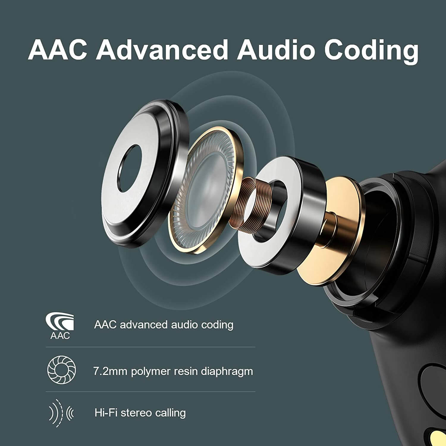 - Благодарение на Advanced Audio Coding (AAC), технологията за намаляване на шума и 7.2 мм високоговорители с диафрагма от полимерна смола, GT5 осигуряват силен бас и мек и ясен от среден до висок звук