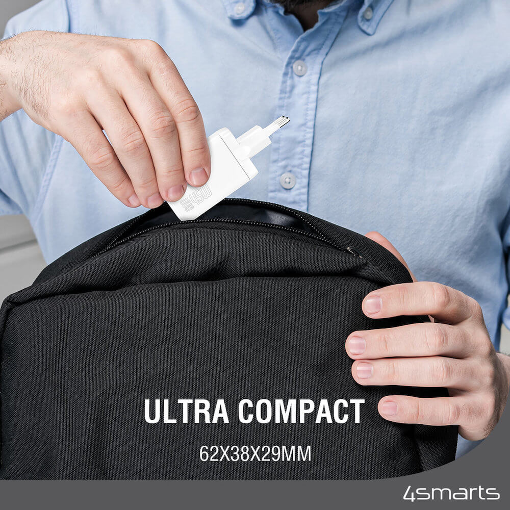 - В комплекта: 1 х 4smarts GaN 2C Wall Charger Dual USB-C 45W