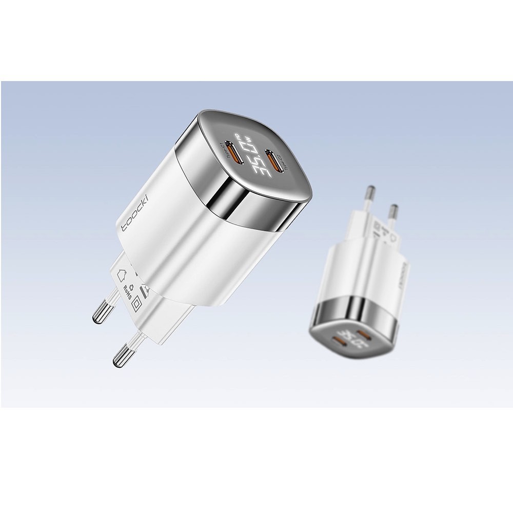 Захранване за ел. мрежа с 2xUSB-C PD изходи с технология за бързо зареждане (бял) - Toocki GaN Wall Charger Dual USB-C 35W PD