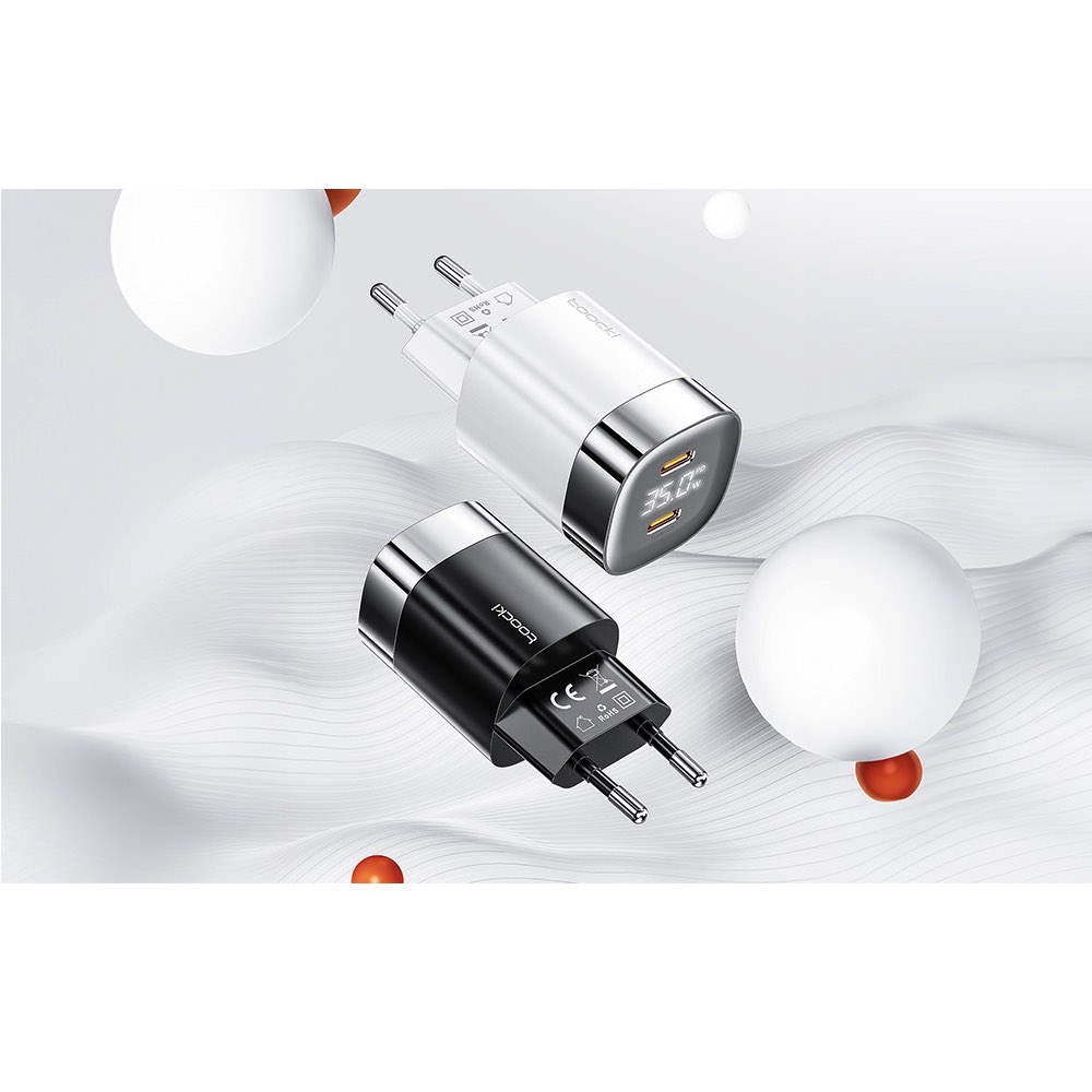 - В комплекта: 1 х Toocki GaN Wall Charger Dual USB-C 35W