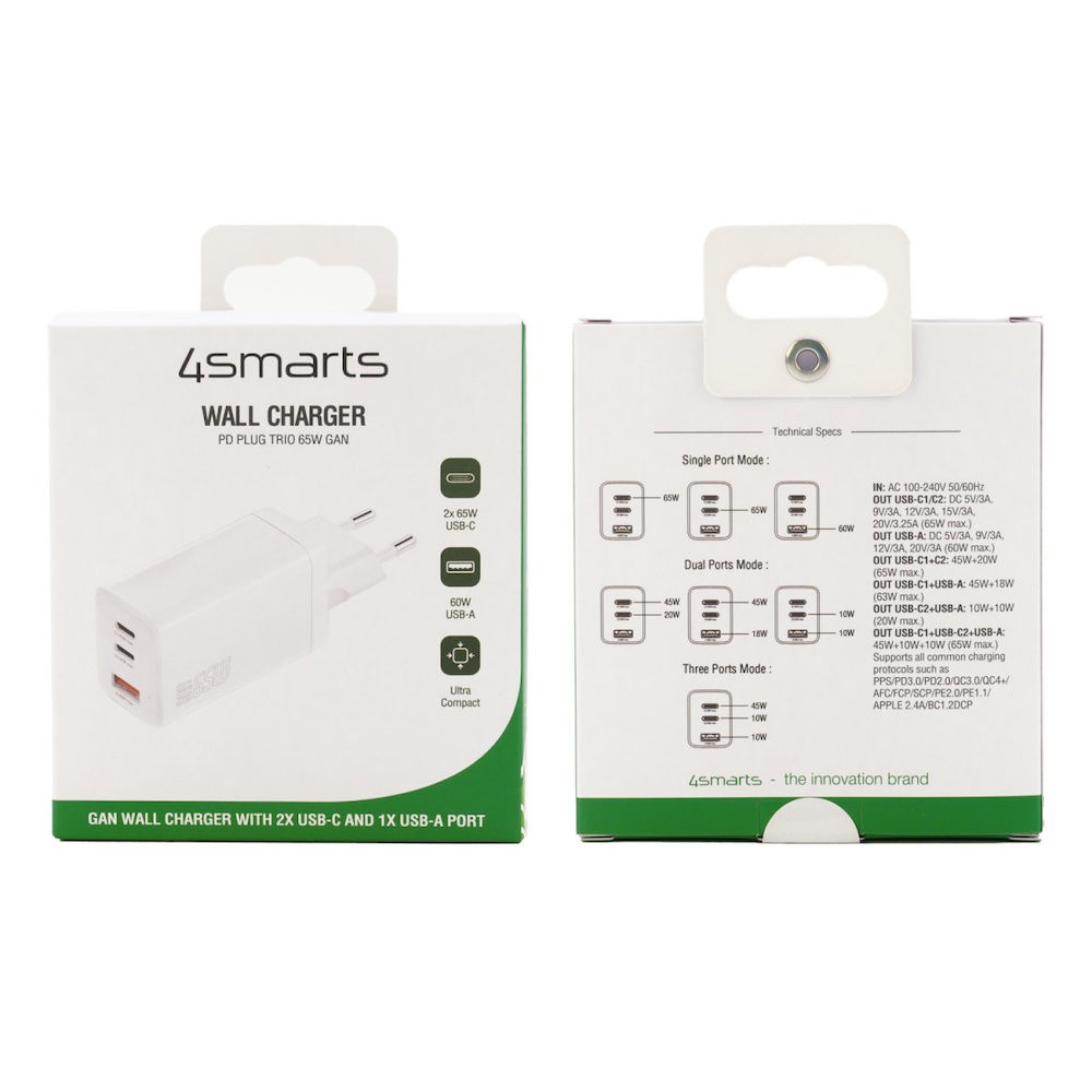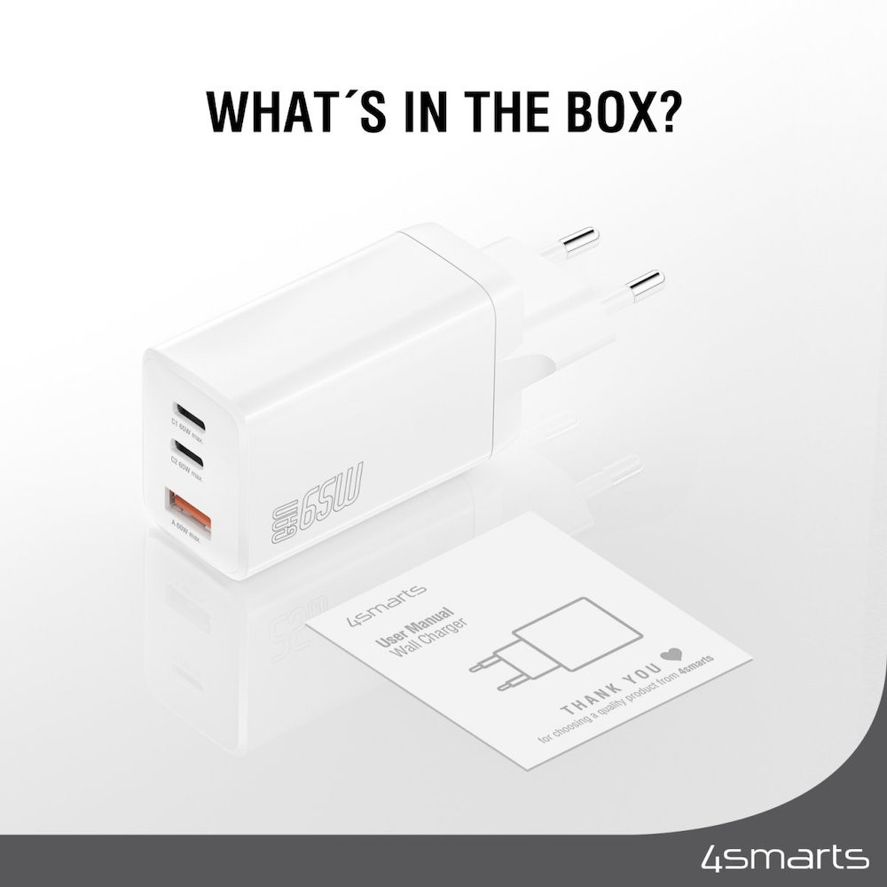 - В комплекта: 1 x 4smarts GaN Wall Charger PDPlug Trio 65W, 1 x ръководство