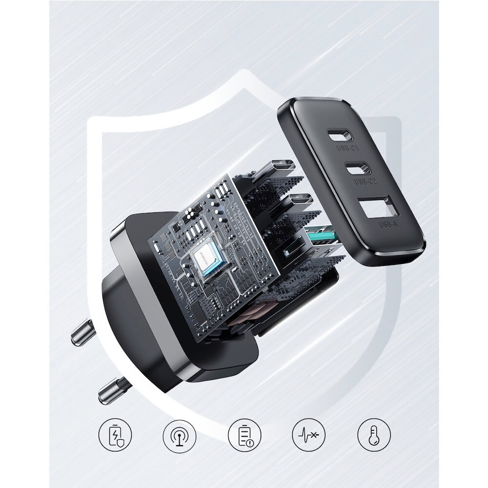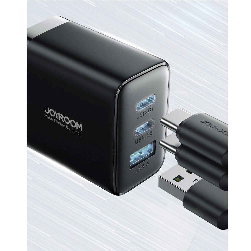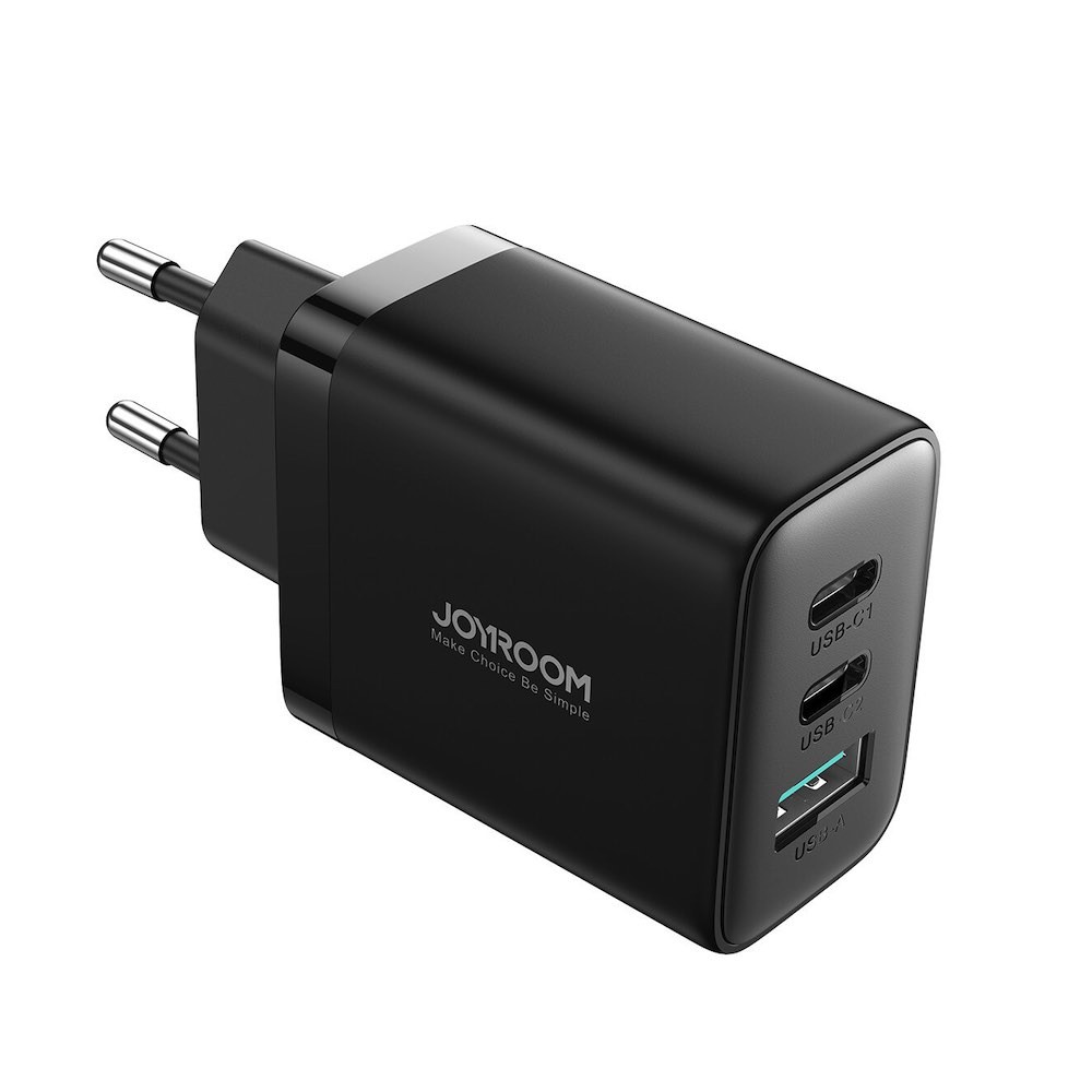 Захранване за ел. мрежа с USB-A и 2xUSB-C изходи с технология за бързо зареждане - Joyroom 2C1A Fast Wall Charger 32W (черен)