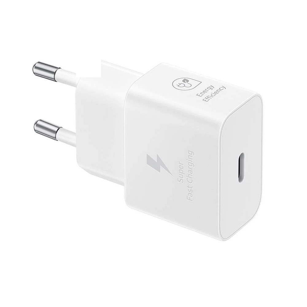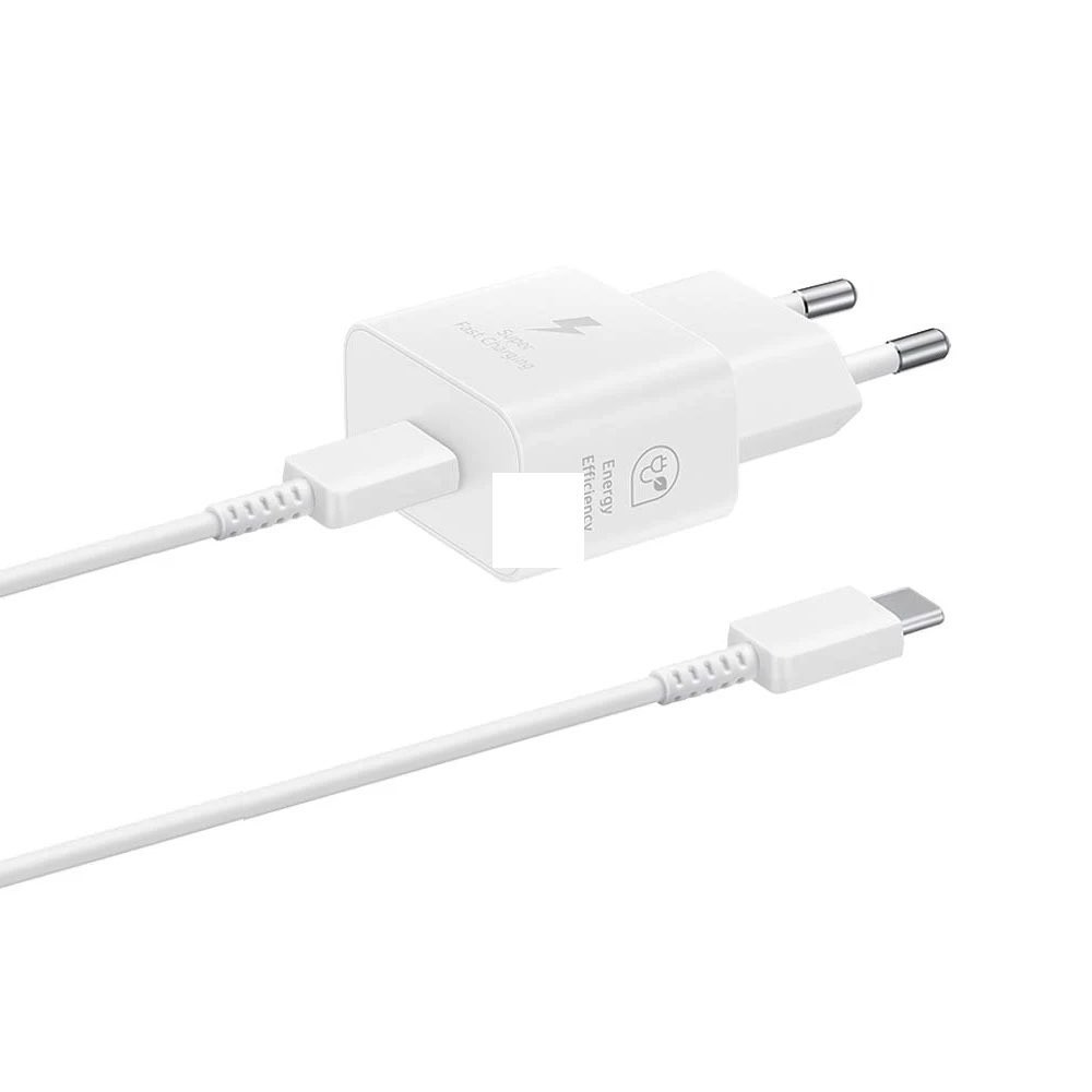 Захранване за ел. мрежа с USB-C изход с технология за бързо зареждане и USB-C кабел (бял) - Samsung USB-C 25W Travel Wall Charger EP-T2510XWEGEU (ритейл опаковка)