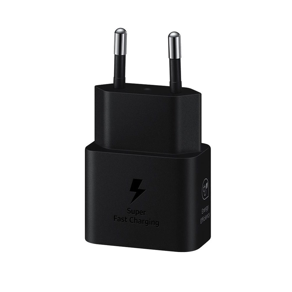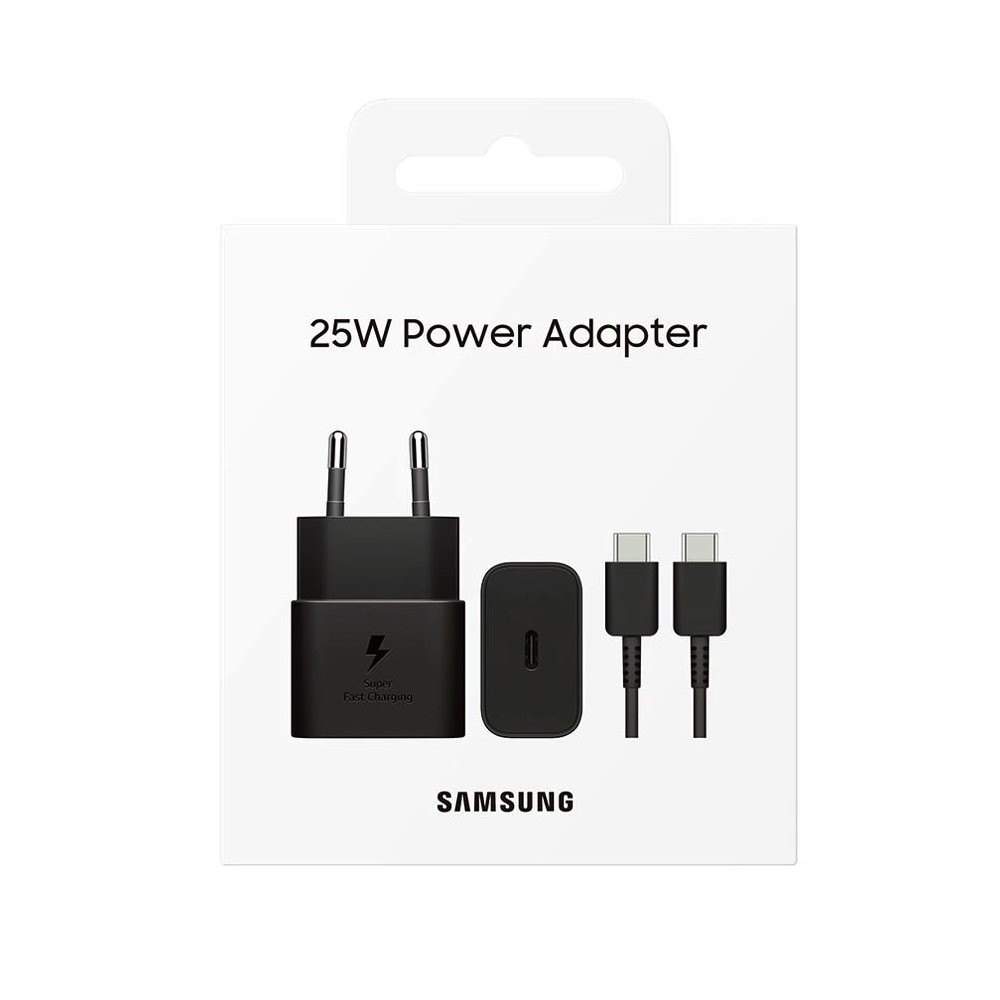 Захранване за ел. мрежа с USB-C изход с технология за бързо зареждане и USB-C кабел (черен) - Samsung USB-C 25W Travel Wall Charger EP-T2510XBEGEU (ритейл опаковка)
