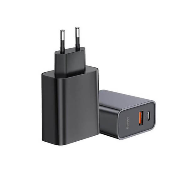 Захранване за ел. мрежа с USB и USB-C изходи и технология за бързо зареждане - Baseus Dual USB & USB-C QC 3.0 Wall Charger 30W (CCFS-C01) (черен)