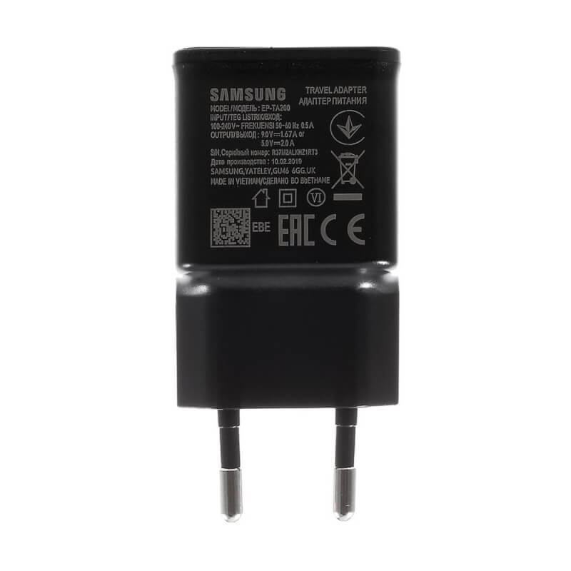 Захранване за ел. мрежа с USB изход и технология за бързо зареждане за Samsung смартфони и таблети (черен) - Samsung Fast Charger EP-TA200EBE 15W (bulk)