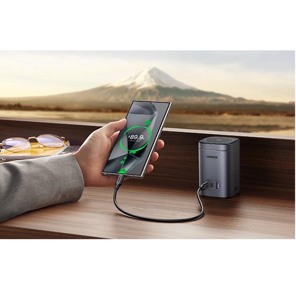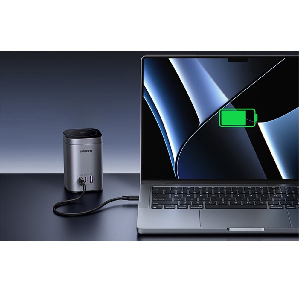 С Ugreen 2-in-1 Magnetic GaN Desktop Charger 65W можете да зареждате до четири мобилни устройства едновременно, което го прави изключително практичен за дома или офиса. Неговият елегантен дизайн и интелигентни функции го правят незаменим аксесоар.