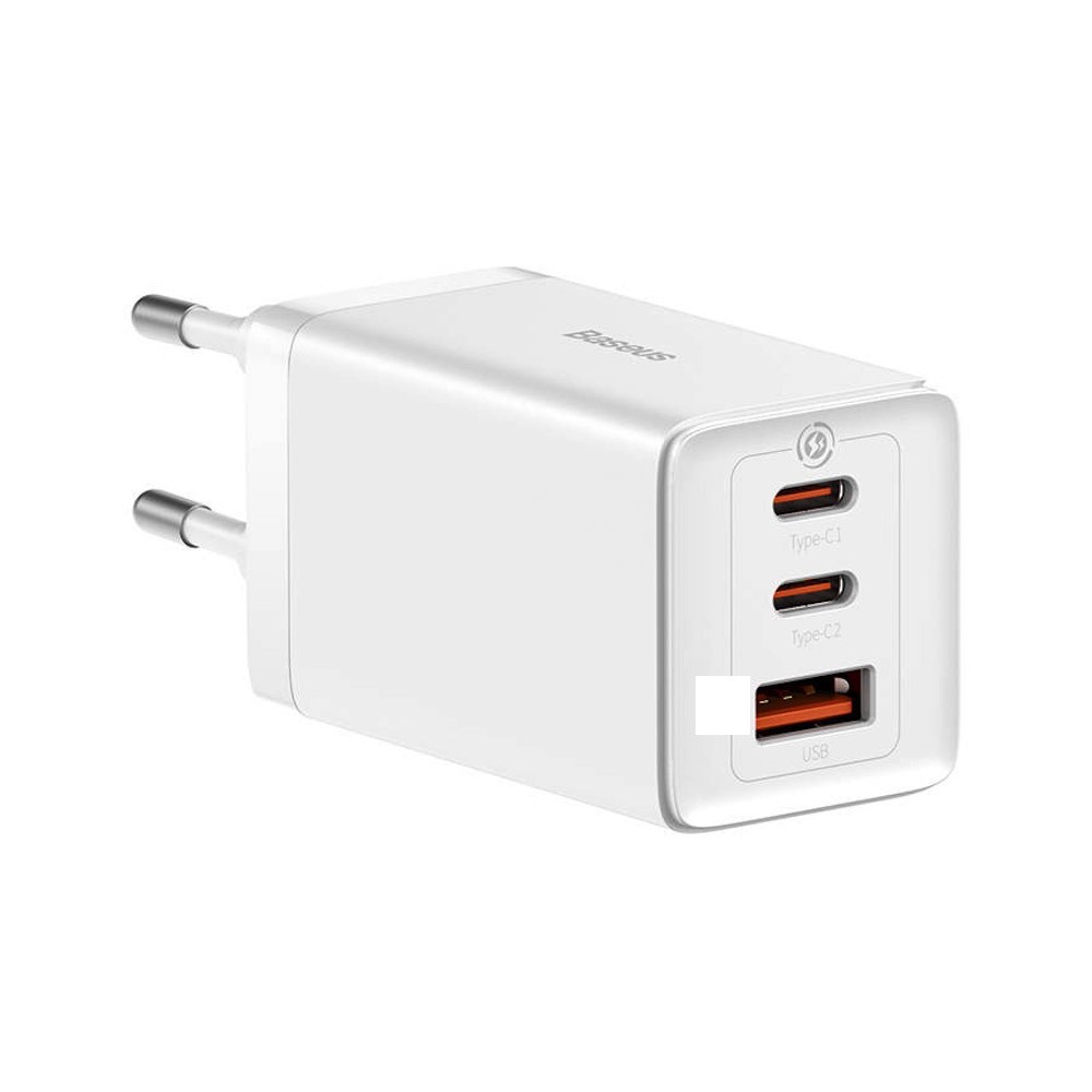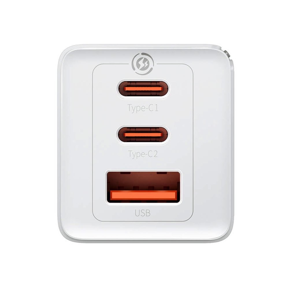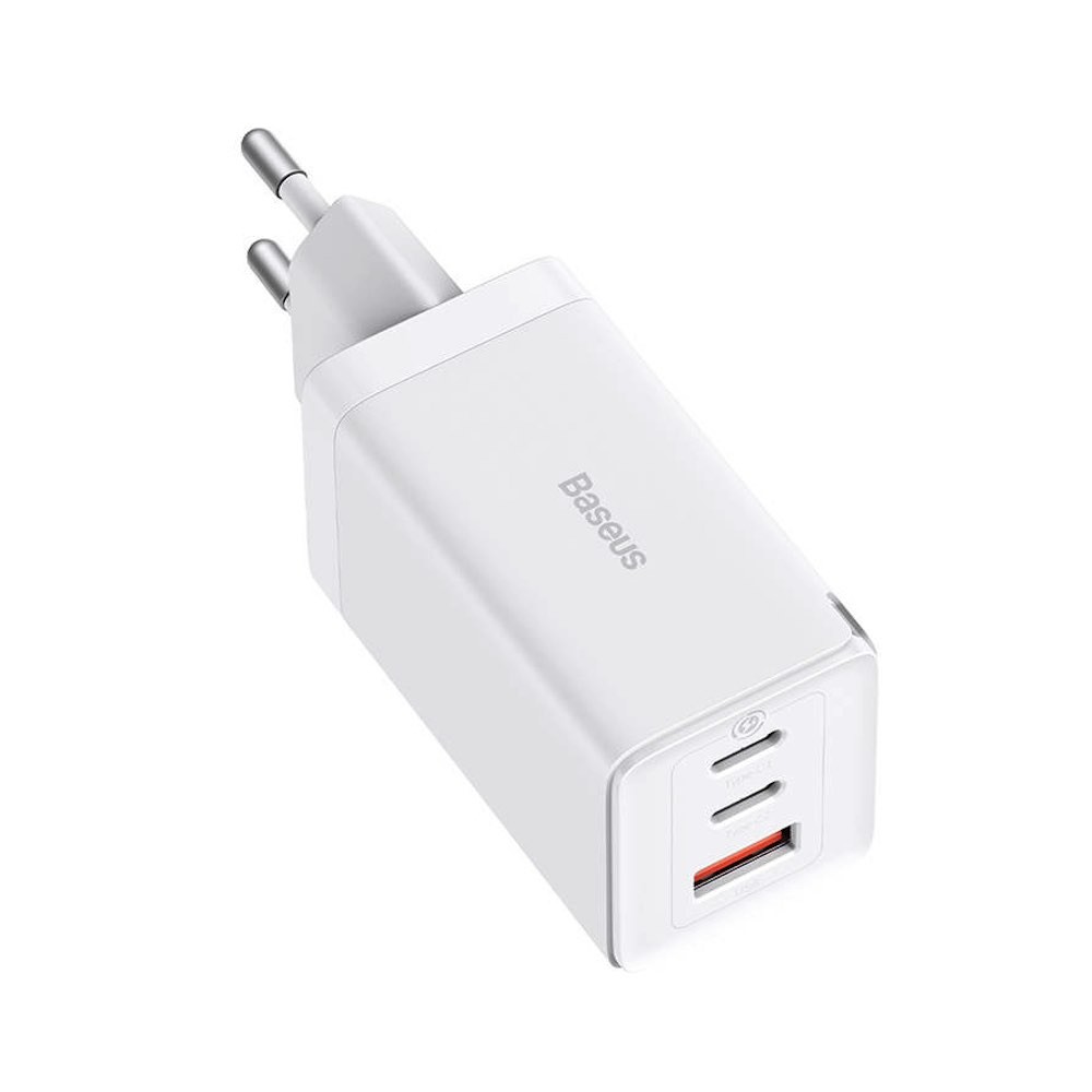 Захранване за ел. мрежа за лаптопи, смартфони и таблети с 2xUSB-C и 1xUSB-A изходи с технология за бързо зареждане - Baseus GaN 5 Pro Laptop Charger 65W (CCGP120202) (бял)