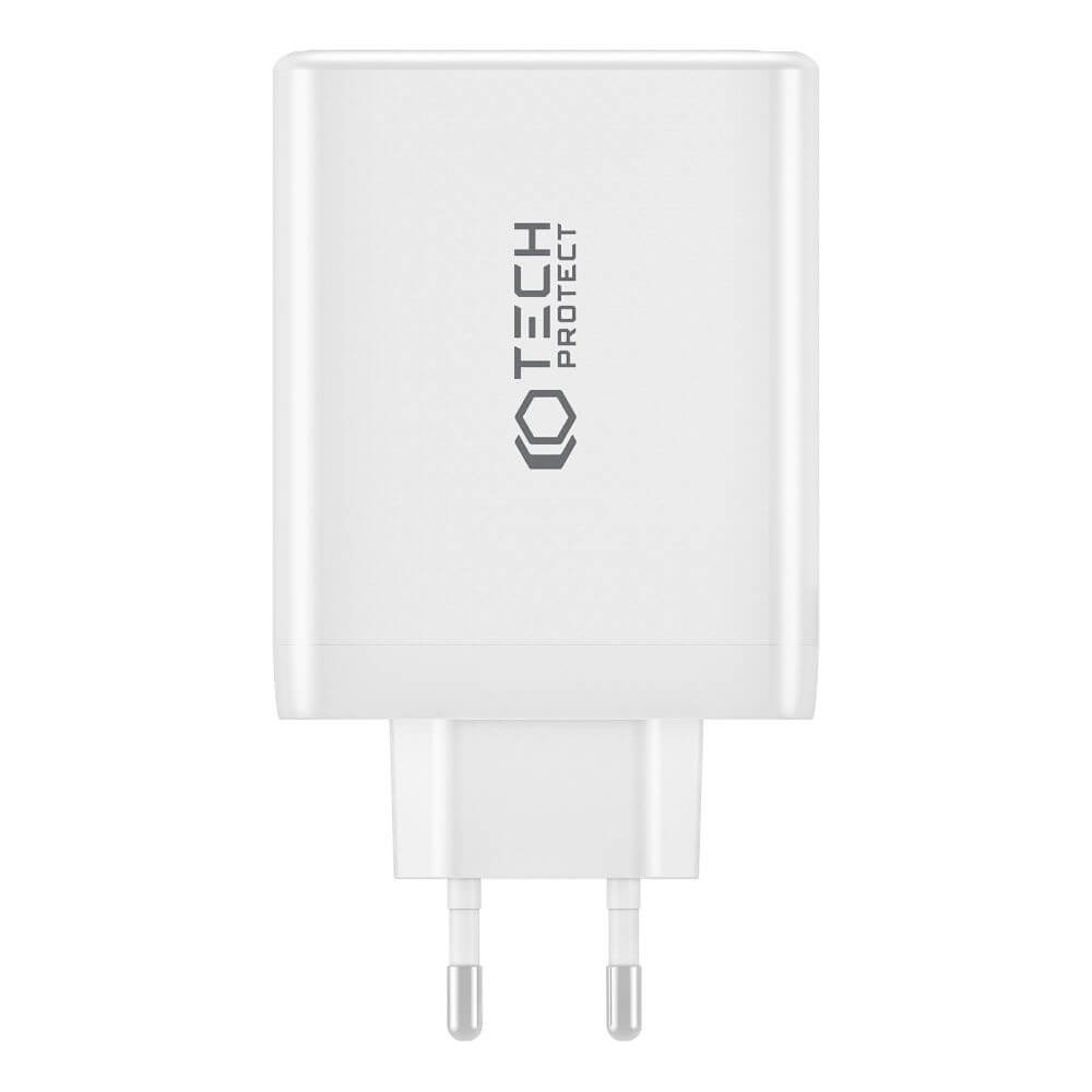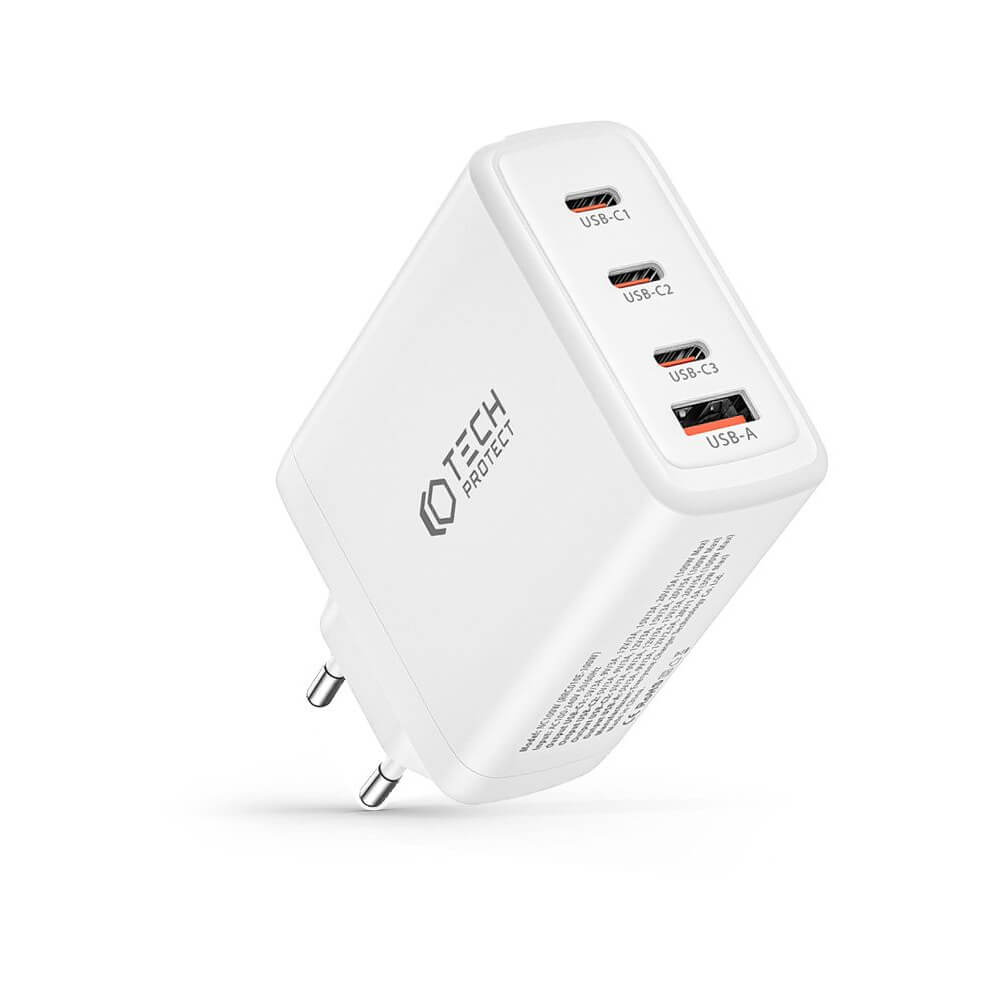 Захранване за ел. мрежа за лаптопи, смартфони и таблети с 3xUSB-C и 1xUSB-A изходи с технология за бързо зареждане - Tech-Protect GaN Fast Wall Charger 100W (бял)