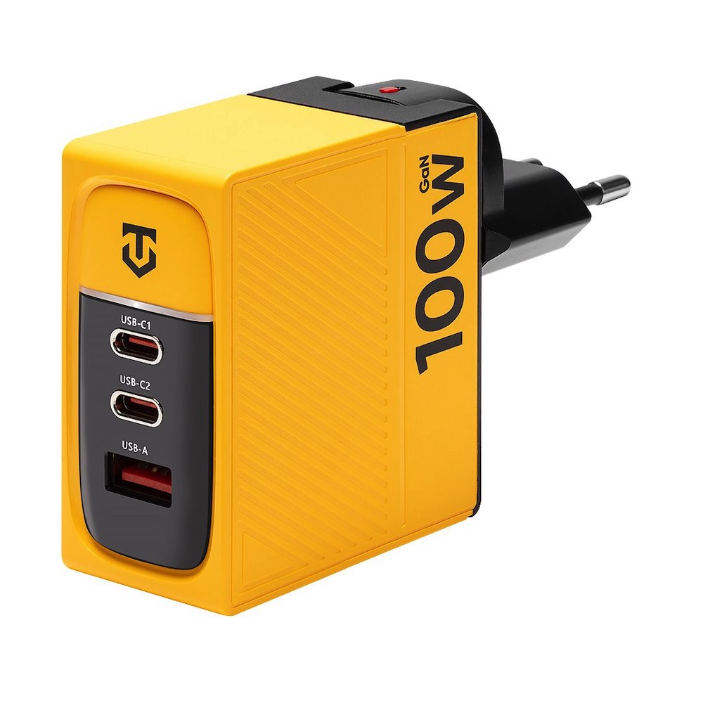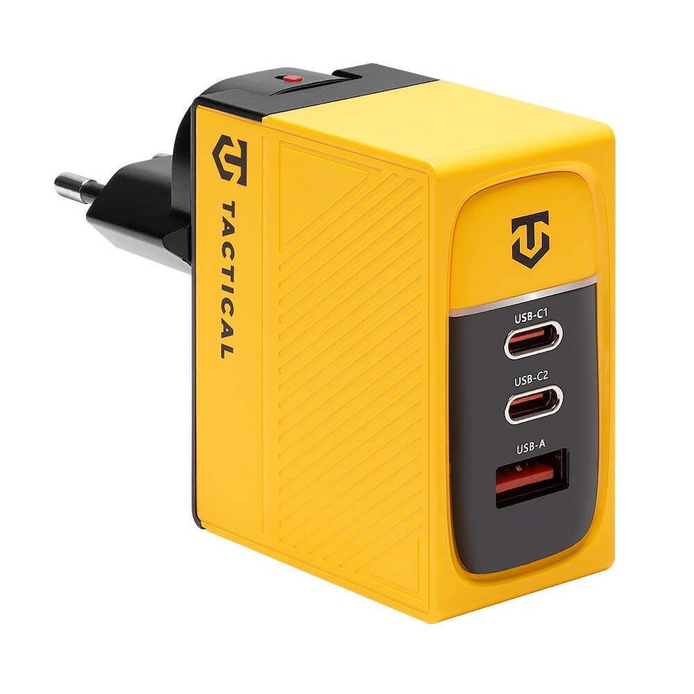Захранване за ел. мрежа за лаптопи, смартфони и таблети с USB-A и 2xUSB-C изходи с технология за бързо зареждане (жълт) - Tactical Nett Warrior GaN Wall Charger 100W