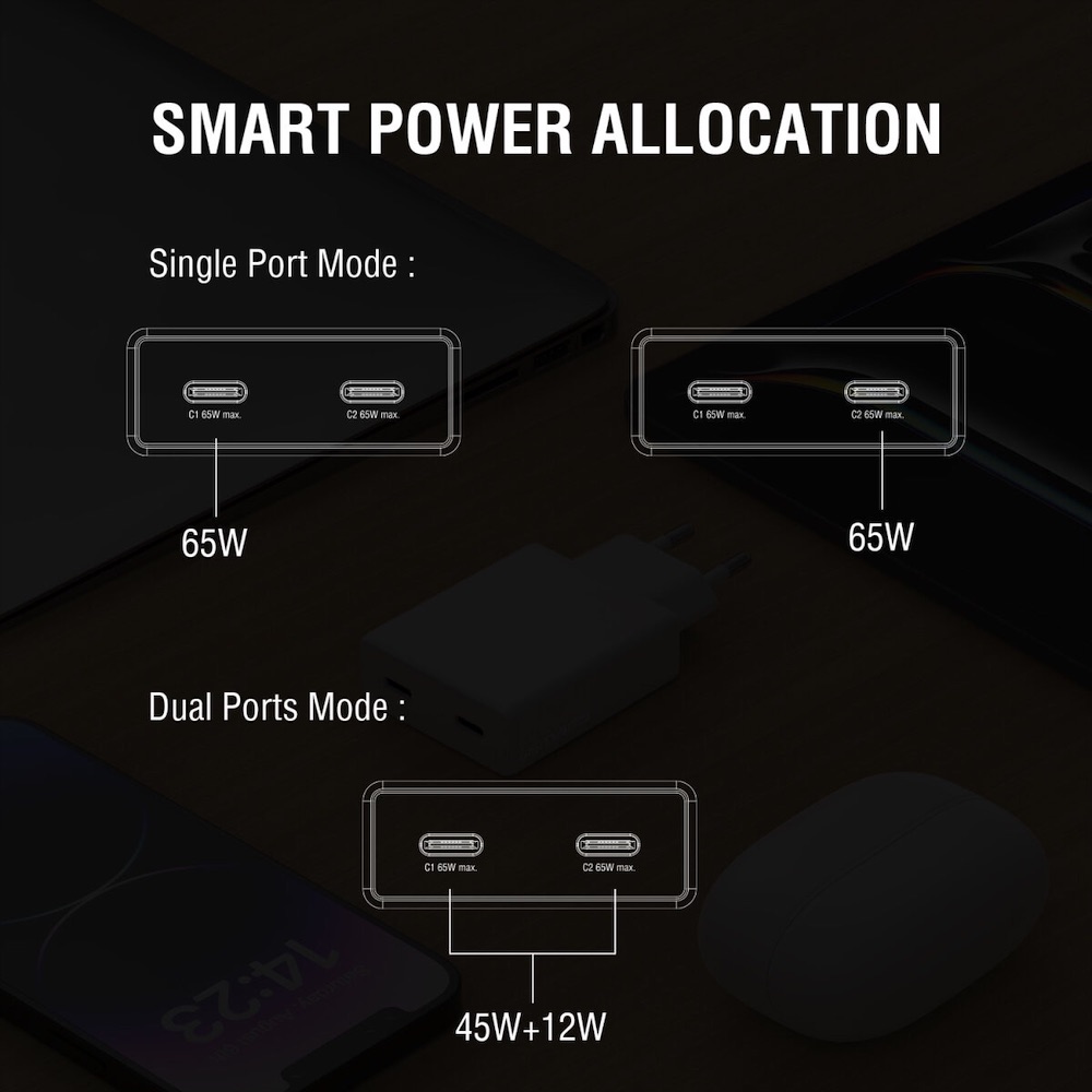 - Модел: GaN PDPlug Slim Duos 2C Wall Charger 65W