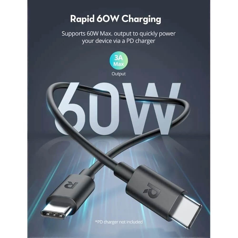 - В комплекта: 1 х RavPower RP-CB1022 USB-C to USB-C Cable 60W