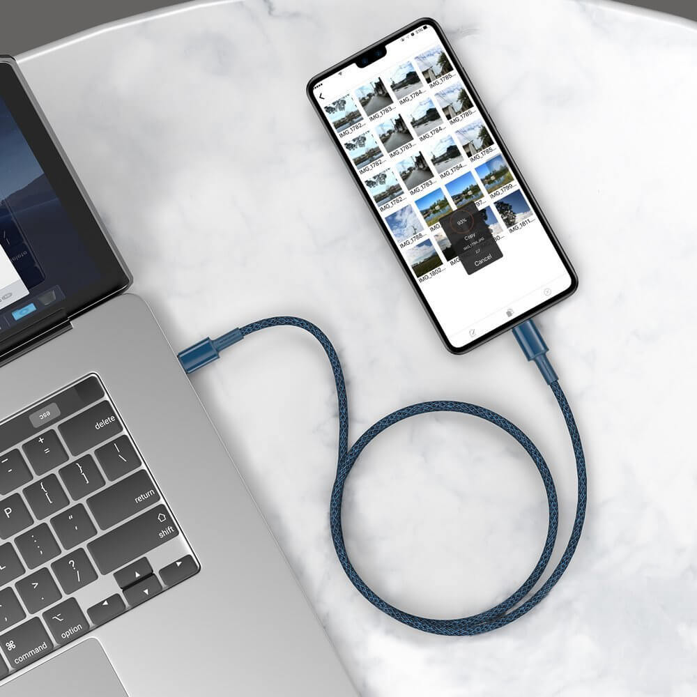 - Качествен кабел за оптимално зареждане на устройства с USB-C порт, поддържащ до 100W мощност - идеален за бързо зареждане и синхронизация