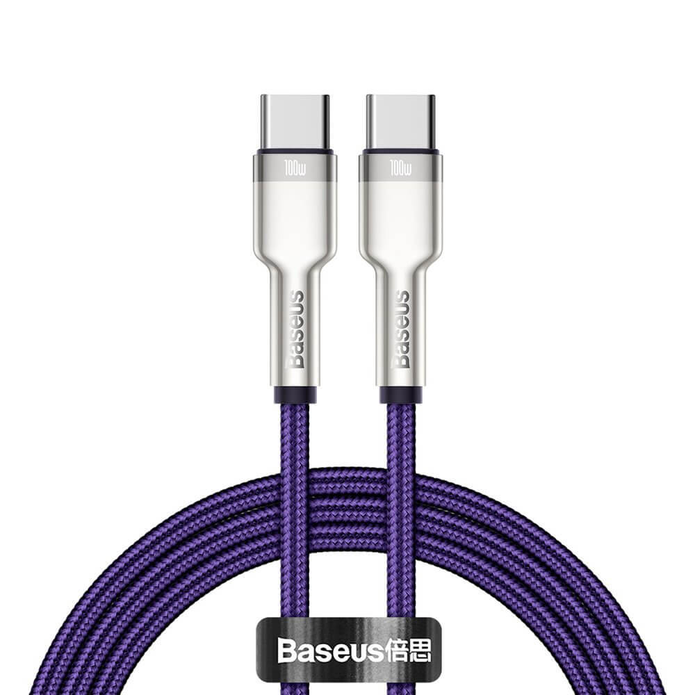 Здрав кабел с въжена оплетка за устройства с USB-C порт (100 см) - Baseus Cafule Metal Series USB-C to USB-C Cable 100W (CATJK-C05) (лилав)