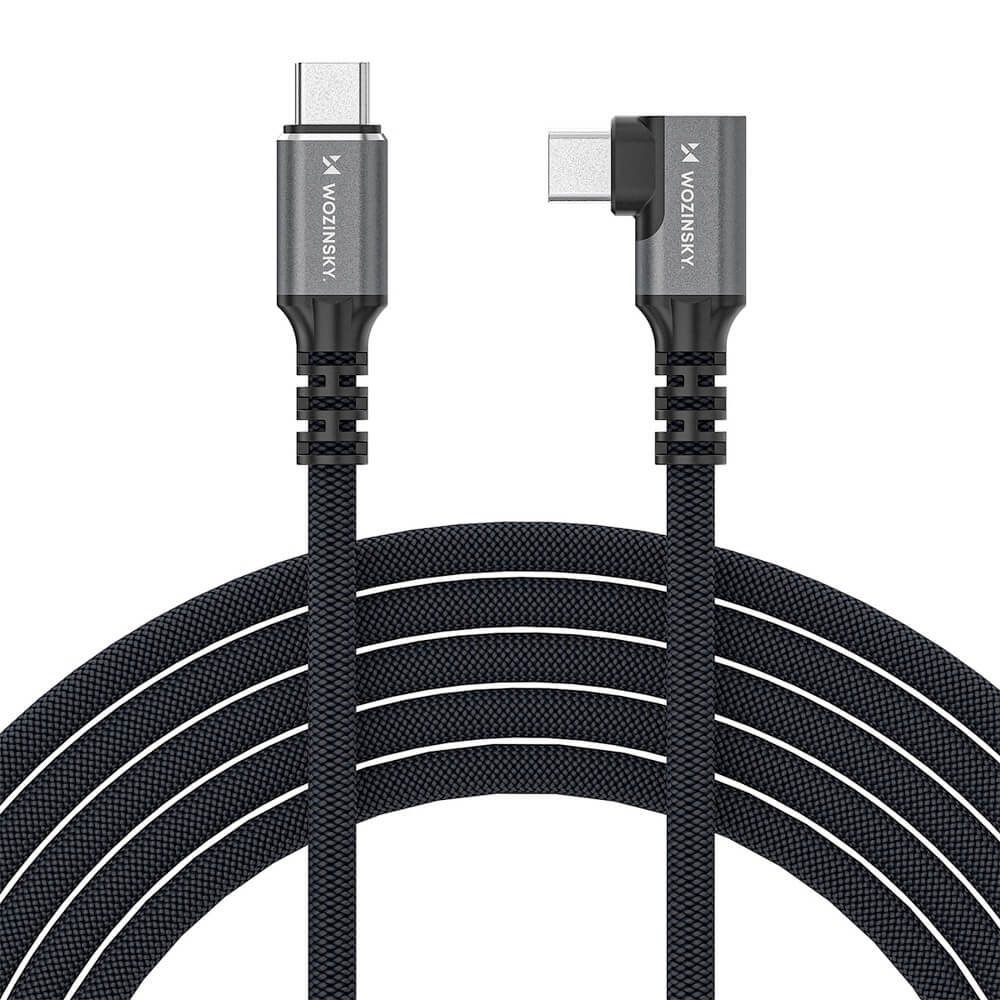 Здрав USB4 кабел с Thunderbolt 4 за устройства с USB-C порт - Wozinsky Thunderbolt 4 USB4 USB-C to USB-C Angled Cable 240W (черен) (150 см)