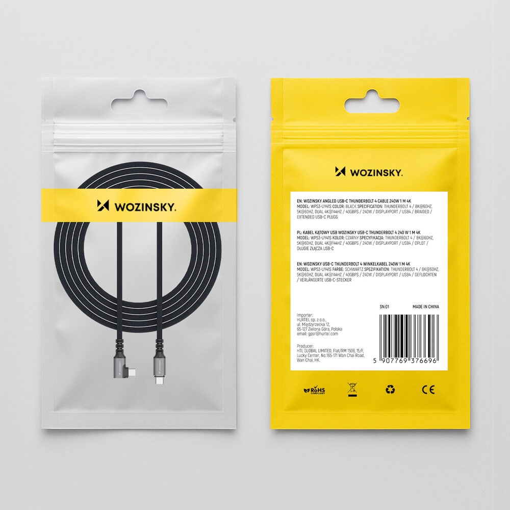 Кабелът Wozinsky Thunderbolt 4 USB4 USB-C to USB-C Angled Cable 240W е идеалното решение за бързо зареждане и пренос на данни между устройства с USB-C порт. С него ще получите не само висока производителност, но и надеждност.