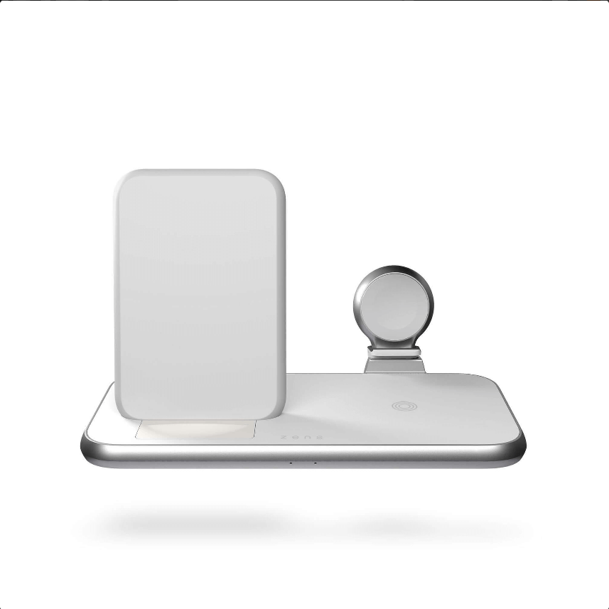 Zens Aluminium 4in1 Wireless Charger ZEDC15W/00 20W - тройна станция за безжично зареждане на Qi съвместими устройства, Apple Watch и допълнителен USB порт (бял)
